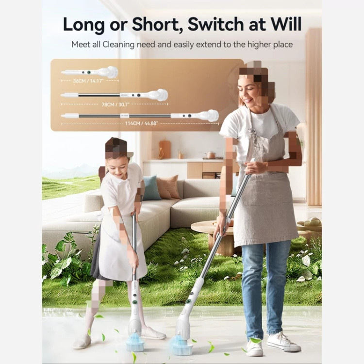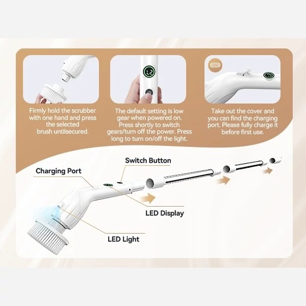 ✅️ دسته اکستنشن قابل تنظیم: برای دسترسی به مناطقی که دسترسی به آن سخت است، برس تمیزکننده شارژی دارای دسته قابل تنظیم است. این ویژگی به شما این امکان را می دهد که طول دسته را به دلخواه خود سفارشی کنید و از تمیز کردن راحت و راحت حتی در فضاهای تنگ اطمینان حاصل کنید. اسکرابر چرخشی برقی چه در گوشههای بلند و چه نقاط پایین، انعطافپذیری لازم برای تمیز کردن کامل را فراهم میکند.