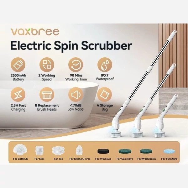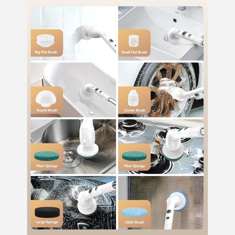 ✅️ 8 سر برس قابل تعویض: اسکرابر حمام شامل 8 سر برس مختلف است که هر کدام به طور خاص برای مقابله با سطوح مختلف تمیزکننده مانند کاشی، وان، سینک و غیره طراحی شده اند. این سرهای برس قابل تعویض تطبیق پذیری را ارائه می دهند و تضمین می کنند که می توانید به طور موثر هر گوشه و کنار حمام خود را تمیز کنید.