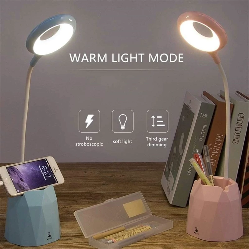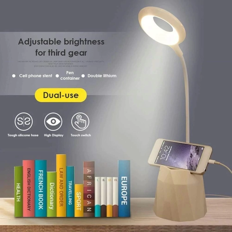 چراغ مطالعه لمسی و شارژی با نور محافظ چشم LED ،جای قلم و نگهدارنده گوشی