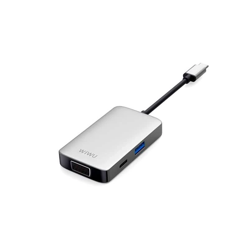 USB Hub DockingStation | USB Type-C | USB3.0 | HDMI | استریو | سرعت بالا | اندازه فشرده | حمل آسان | برای مک بوک و گوشی های هوشمند آلیاژ آلومینیوم + شیشه سکوریت | - خاکستری Wiwu Alpha T5 Pro یک هاب USB 4 در 1 است که یک راه آسان و راحت برای اتصال دستگاه های دارای USB Type-C به انواع دستگاه های خارجی و لوازم جانبی ارائه می دهد. دارای یک پورت USB Type-C، یک پورت USB 3.0، یک پورت HDMI و یک پورت صوتی استریو است که به شما امکان می دهد به طیف گسترده ای از دستگاه ها و لوازم جانبی از جمله مانیتور، تلویزیون، بلندگو و غیره متصل شوید. پورت USB Type-C از Power Delivery 2.0 پشتیبانی می کند و به شما امکان می دهد دستگاه های خود را در حین استفاده از آنها شارژ کنید. پورت USB 3.0 سرعت انتقال داده با سرعت بالا تا 5 گیگابیت بر ثانیه را فراهم می کند، در حالی که پورت HDMI از وضوح تا 4K@30 هرتز پشتیبانی می کند. طراحی جمع و جور و سبک وزن آن را آسان می کند تا آن را در سفر با خود ببرید و آلیاژ آلومینیوم و ساختار شیشه سکوریت دوام و سبکی را ارائه می دهد.