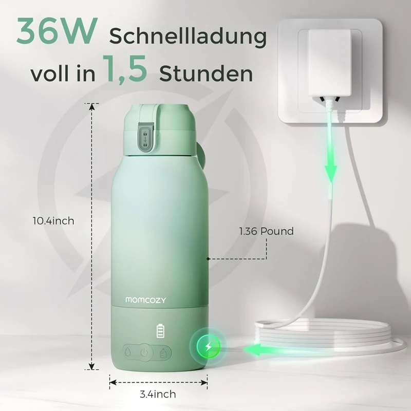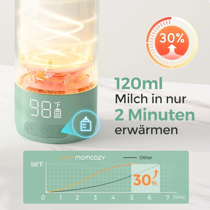 👶 گرمایش سریع: گرمکن شیشه شیر Momcozy در حال حرکت، 100 میلیلیتر آب را در 3 دقیقه تا 40 درجه سانتیگراد و شیر سرد را در 5 دقیقه تا 37 درجه سانتیگراد گرم میکند.