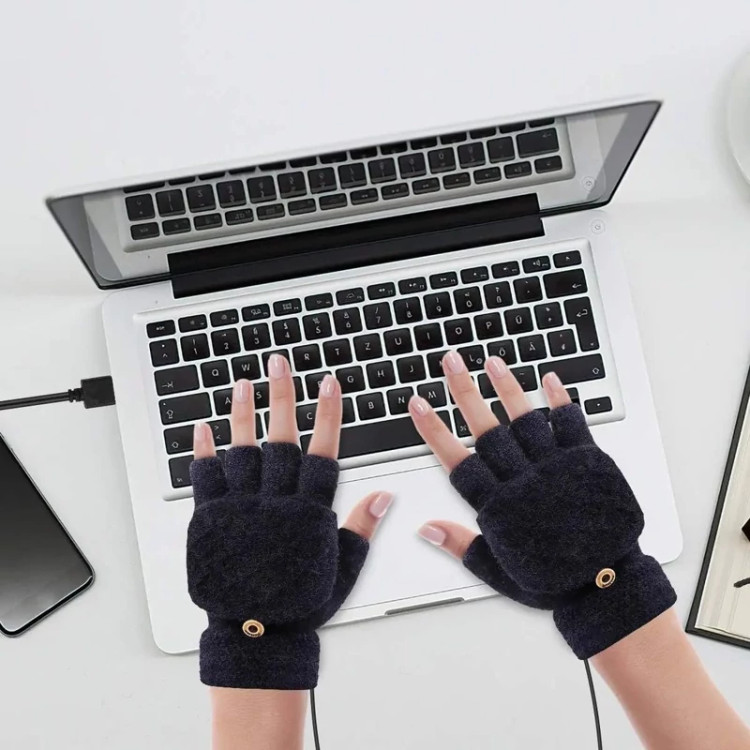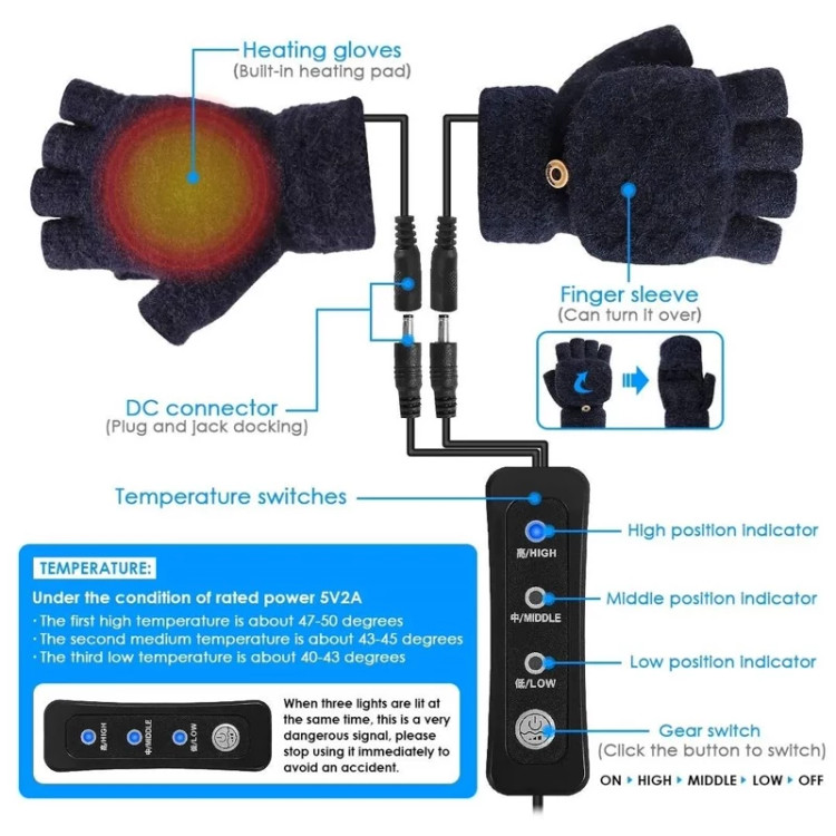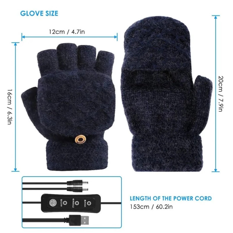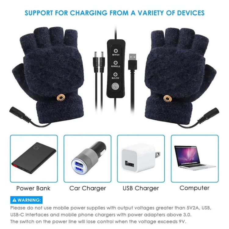 دستکش گرم کن یو اس بی YINUODAY، دستکش یونیسکس لپ تاپ گرم کن دستی زمستانی با 3 درجه حرارت، بافندگی کامل و انگشتی