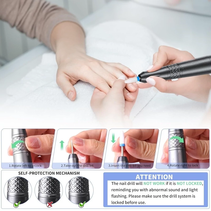 💗 عمر باتری طولانی مدت و صفحه نمایش LCD LED: تا 8 ساعت کار. مته ناخن برقی برای ناخنهای اکریلیک دارای باتری قابل شارژ 2000 میلیآمپر ساعتی است. در حدود 1.5 ساعت به طور کامل شارژ میشود و به مدت 8 ساعت کار میکند. صفحه نمایش LCD آن سرعت و میزان باتری را نشان میدهد که برای تنظیم سرعت و یادآوری شارژ مناسب است.