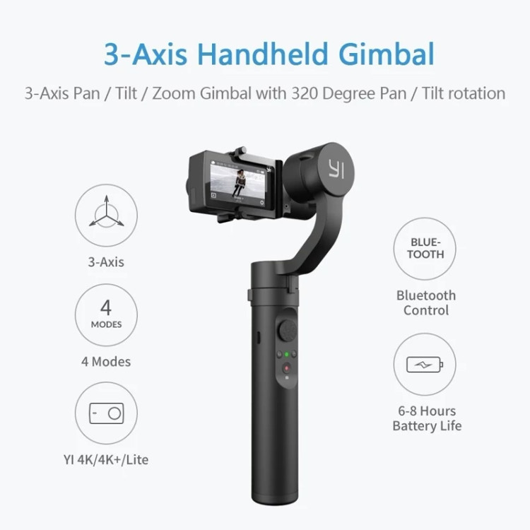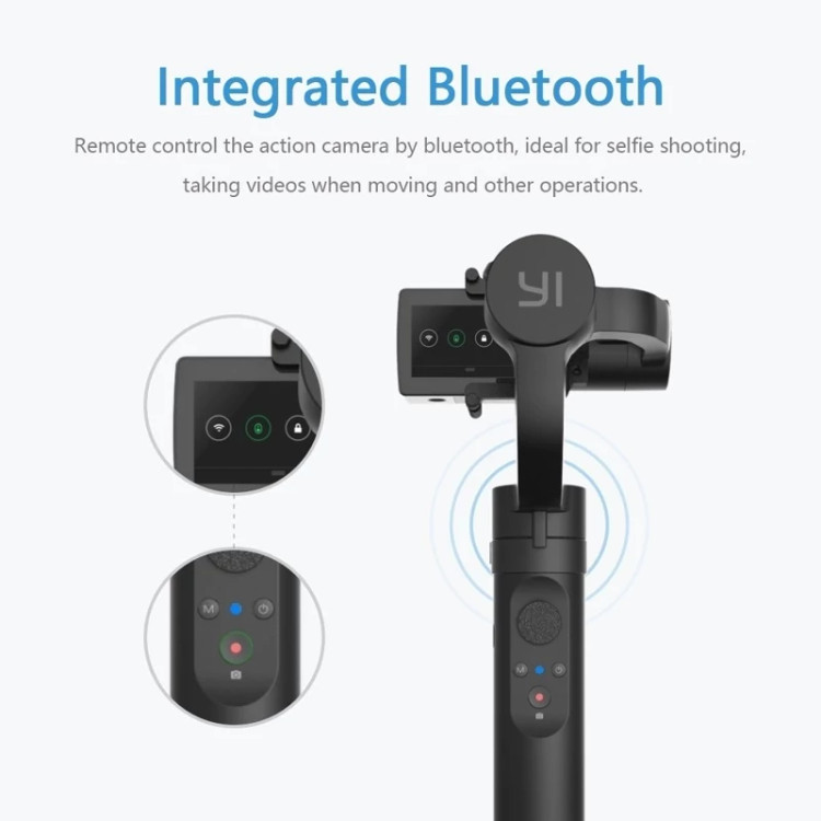 🎞 یکپارچه کردن کنترل از راه دور بلوتوث برای اتصال به دوربین اکشن YI تنها یک مرحله طول می کشد پایه نخی جهانی ¼ اینچی به شما امکان می دهد از گیمبال دستی YI با سایر پایه های حرفه ای استفاده کنید.